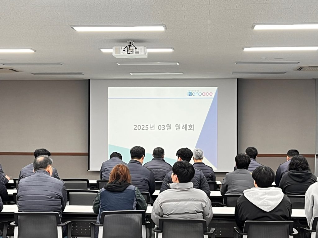 2025년 3월 월례회의를 위하여 임직원 분들 모두 한자리에 모였습니다!